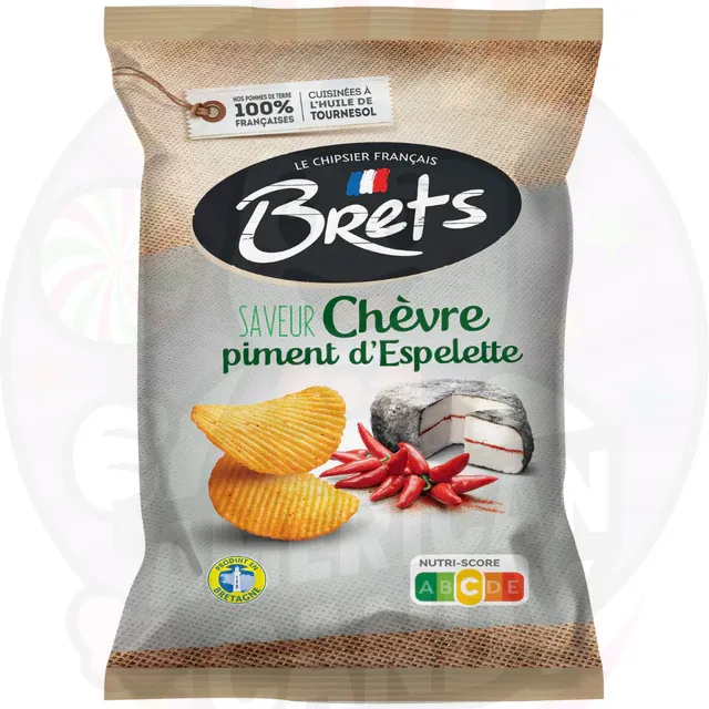 Las Bret’s Goat’s Cheese with Chili son unas patatas fritas onduladas con sabor a queso de cabra y un toque de chile picante, una combinación única que equilibra la cremosidad del queso con la intensidad del picante. 😋✨