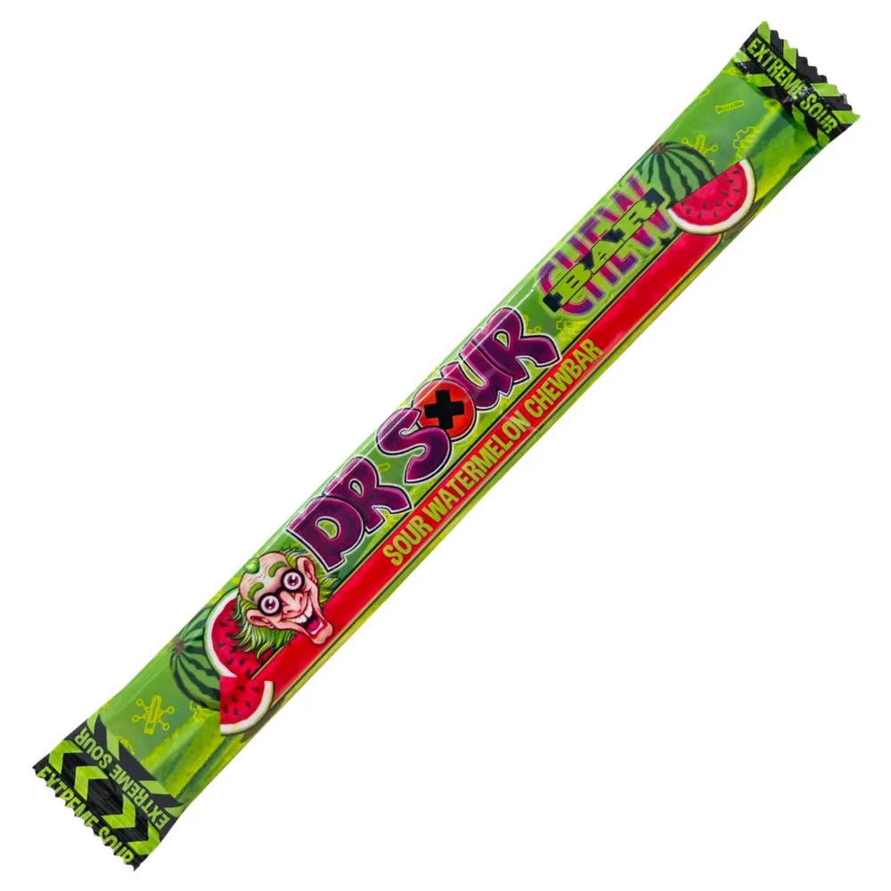 Descubre la Dr. Sour Watermelon Chew Bar, una barra de gominola con intenso sabor a sandía ácida que combina la dulzura de la fruta con un toque sour irresistible. Su textura suave y masticable la hace perfecta para los amantes de los sabores frutales y picantes.