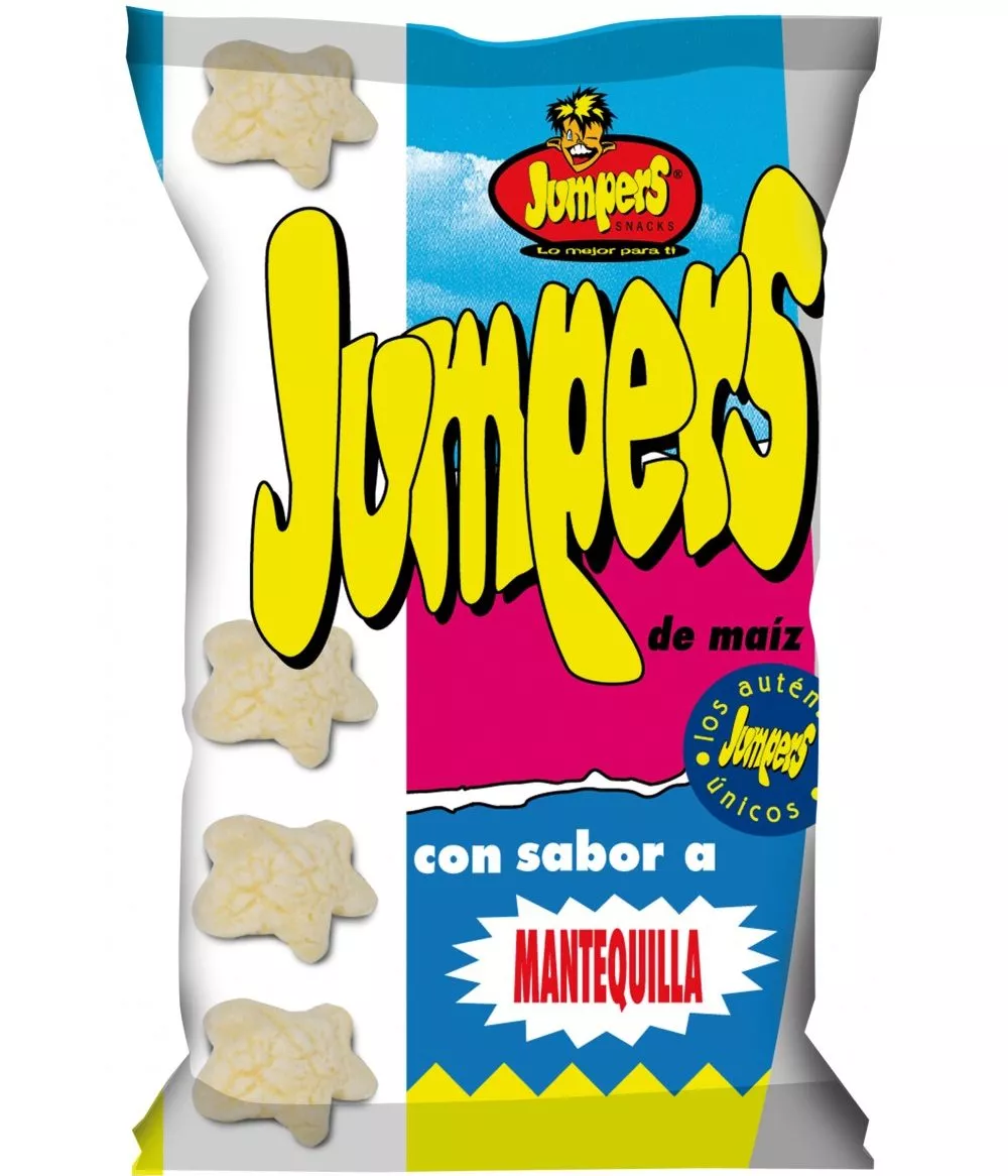 Los Jumpers Mantequilla Familiar 100 g son la versión grande del clásico snack de maíz con sabor a mantequilla. Su textura crujiente y ligera y su característico aroma mantequilloso hacen de este aperitivo uno de los más populares y adictivos.